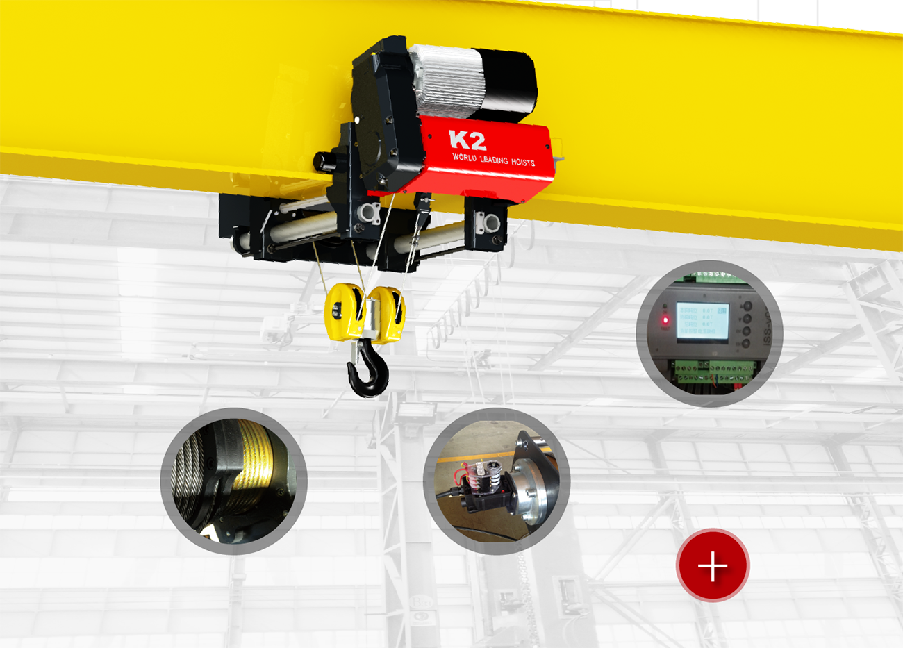 | 0.8t-32t Max. 60m M5-M6 低凈空設(shè)計,C型結(jié)構(gòu) 起升電機位置可旋轉(zhuǎn) 柔性驅(qū)動,內(nèi)應(yīng)力小,傳動效率高 變頻無級調(diào)速,運行平穩(wěn)免維護 重級制電機,持續(xù)率60%ED |