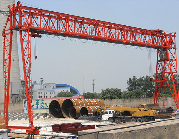 雙梁門式起重機(jī)適用于露天倉庫、料場、鐵路貨站、港口碼頭貨區(qū)等裝卸搬運(yùn)作業(yè)。工作級別為A5級,主鉤起升速度為5.9m/min,副鉤起升速度為13.2m/min,大車運(yùn)行為36 m/min,小車運(yùn)行為38.5 m/min,雙梁門式起重機(jī)還可配用多種專用吊具進(jìn)行某些特殊作業(yè),如電磁吊,抓斗吊等。